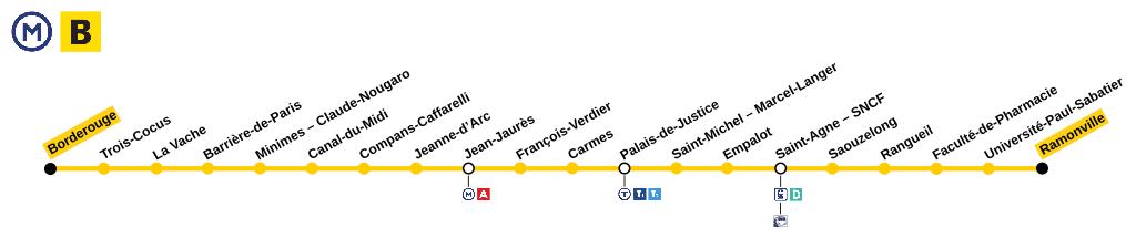 Keywords: Toulouse line B map.svg de Plan der Linie B der U-Bahn von Toulouse en Map of Toulouse public transport line B subway fr Plan de la ligne B du métro de Toulouse own Sardon 2009-01-14 Maps of Toulouse Metro