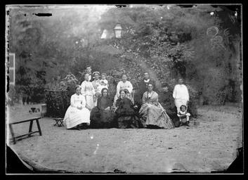 | Keywords: Toulouse , rue d’Astorg. Groupe. Les Gomiécourt , nous - Fonds Trutat - 51Fi209.jpg Domicile des Trutat 11 rue d'Astorg Vers 1869 Portrait de groupe des familles de Gomiécourt et Trutat dans la cour de la maison Au premier rang de gauche à droite assises cinq femmes et un enfant la deuxième est Louise Sabatier mère d'Eugène robes longues à l'extrême droite Paul fils d'Eugène Trutat assis par terre ; au second rang debout six personnes femmes la quatrième est Caroline Cambe femme d'Eugène en deuxième position une femme tient dans ses bras Henri fils d'Eugène ; au dernier rang homme de face ; banc buisson depicted people depicted place circa 1869 photo glass cm 13 18 Institution Archives municipales de Toulouse 51Fi209 object history ProvenanceEvent 1971 gift Association Les Toulousains de Toulouse et Amis du Vieux Toulouse Jean Trutat ProvenanceEvent 2006-12-14 deposited Archives municipales de Toulouse Association Les Toulousains de Toulouse et Amis du Vieux Toulouse exhibition history Mention manuscrite de Trutat sur l ™enveloppe «Toulouse rue d ™Astorg Groupe Les Gomiécourt nous» Ancien B 11n° 24 accession number 51Fi209 Fonds Eugène Trutat - Archives municipales de Toulouse PD-old-100-1923 Fonds Trutat - Archives municipales de Toulouse 51Fi209 Rue d'Astorg Toulouse Photographs of Toulouse by Eugène Trutat |