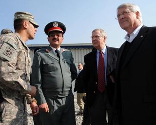 | Keywords: Tour of Central Training Facility DVIDS240702.jpg en U S Army Spc Mohamad Azimi left translates for Afghan Brig Gen Khudadad Agah second from left commander Training Centers and U S Senators Roger F Wicker right and Mitch McConnell at the Central Training Facility Kabul Jan 9 2010 Sens Wicker and McConnell were joined by Sens Lisa Murkowski and Mike Crapo and Rep Michael Castle for a visit to CTC and other facilities in the area The Congressional delegation received briefings from CTC NATO Training Mission-Afghanistan and International Security Assistance Force senior leadership and met with Afghan national police officers while in the Kabul area The mission of NTM-A is to train the Afghan national security forces and enhance the government of the Islamic Republic of Afghanistan's ability to achieve a stable and secure country 2010-01-09 Chief Petty Officer Julian Carroll https //www dvidshub net/image/240702 100109-N-+++++-015 2010-01-17 14 08 KABUL AF PD-USGov-Military-Navy NATO Training Mission - Afghanistan Images from DoD uploaded by Fæ |