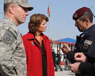 | Keywords: Tour of Central Training Facility DVIDS240709.jpg en Lt Gen William B Caldwell IV left commander NATO Training Mission Afghanistan and U S Senator Lisa Murkowski talk with Brig Gen Carmelo Burgio commander Combined Training Advisory Group Police during a tour of the Central Training Facility Kabul Jan 9 2010 Murkowski was joined by Senators Roger F Wicker Mitch McConnell and Mike Crapo and Rep Michael Castle for a visit to CTC and other facilities in the area The Congressional delegation received briefings from CTC NATO Training Mission-Afghanistan and International Security Assistance Force senior leadership and met with Afghan national police officers while in the Kabul area The mission of NTM-A is to train the Afghan national security forces and enhance the government of the Islamic Republic of Afghanistan's ability to achieve a stable and secure country 2010-01-09 Chief Petty Officer Julian Carroll https //www dvidshub net/image/240709 100109-N-+++++-014 2010-01-17 14 08 KABUL AF PD-USGov-Military-Navy NATO Training Mission - Afghanistan Images from DoD uploaded by FĂŚ |