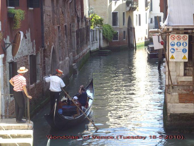 Keywords: Tourists on a Gondolier ride..jpg en Tourists on a Gondolier ride in the narrow waterways of Venice own Rudolph A furtado Tuesday 18-5-2010 Gondolas boat