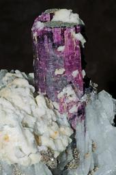 | Keywords: Tourmaline, albite (Brésil) 2.jpg fr cristal de tourmaline var elbaite de couleur framboise à lie de vin avec albite trouvé en 1978 dans la géode d'Itatiaia au Brésil own Parent Géry 2010-09-09 Elbaite Tourmaline Albite Taken with Nikon D90 |