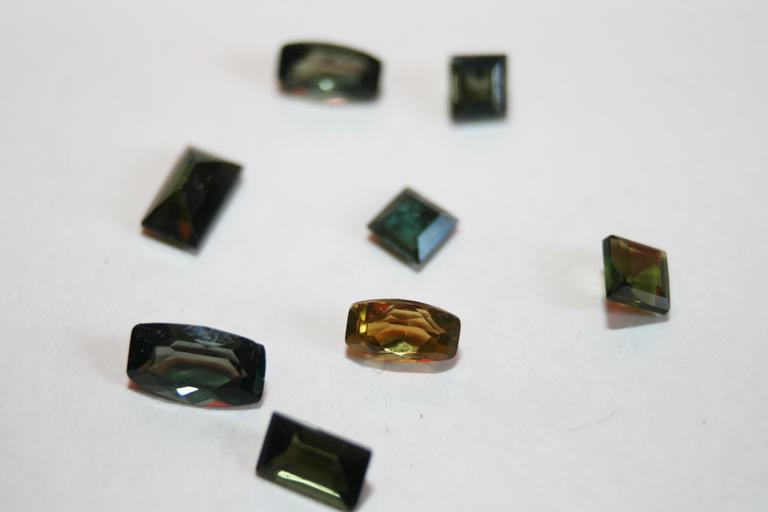Keywords: Tourmaline Gemstones.JPG en Facet cut Tourmaline gemstones in various colours own Michelle Jo 2010-03-09 Tourmaline