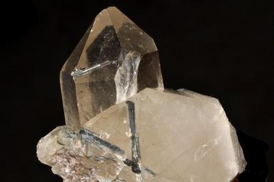 Keywords: Tourmaline verte sur quartz 1(Brésil).jpg Verdelith grüner Turmalin in Quarz Crystal of verdelite green Tourmaline in quartz Cristaux de Tourmaline verte dans cristaux de Quartz Own 2009-01-25 Parent Géry Verdelite Quartz Taken with Nikon D90