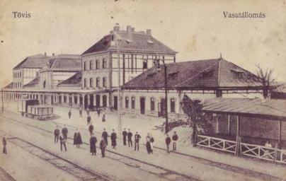 Keywords: Tövis.jpg en Postcard of village Tövis Hungary now Teiuş Romania hu Képeslap a régi tövisi állomásról Fehér megye Erdély own postcard / saját tulajdonú képelap unknown / ismeretlen before 1918 / 1918 előtt PD-HU-unknown Teiuș train station