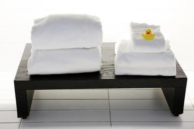 Keywords: towels tables bathroom laundry clean duck spa white tiles bench yellow rubber
