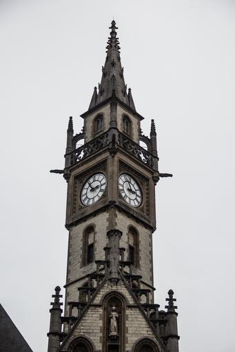 Keywords: tower architecture center building ghent belgium historical center historic building monument city time clock