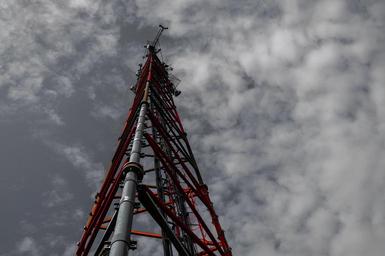 Keywords: tower great high red black white black and white radio sky clouds