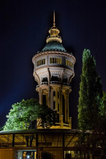 Keywords: tower water tower building at night budapest capital urban in the evening lighting architecture