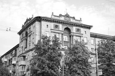 Keywords: town black and white city building old architecture travel street vintage tourism retro urban style europe house monochrome view landmark summer landscape window ukraine