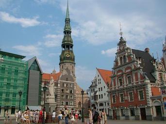 Keywords: Town Hall Square Riga.JPG Town Hall Square in Riga Latvia Own 2006-07-09 Horvat PD Rātslaukums Riga Pēterbaznīcas iela Riga