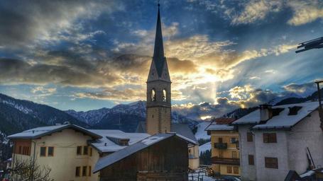 Keywords: town small town village mountain old winter snow