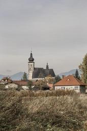 Keywords: town village small autumn fall winter mountains hills horizon church chapel roofs
