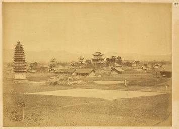 | Keywords: Town of Yangxian, Kaiming Temple and a Thirteen-Story Pagoda Built in 713. Shaanxi Province, China, 1875 WDL2097.png Artwork ru Боя ский Адольф- иколай Э азмович fr Boiarskii Adolf-Nikolay Erazmovich en Boiarskii Adolf-Nikolay Erazmovich zh 阿道夫 伊拉莫维奇 鲍 尔斯基 pt Boiarskii Adolf-Nikolay Erazmovich ar أدولف-نيكولاي إرازموفيتش بويارسكي es Boiarskii Adolf-Nikolay Erazmovich ru г Янсянь х ам Каймин и т инадцатиэтажная пагода пост оенная в 713 г П овинция Шэньси Китай 1875 г fr Ville de Yangxian temple de Kaiming et une pagode de treize étages construite en 713 Province du Shaanxi en Chine 1875 en Town of Yangxian Kaiming Temple and a Thirteen-Story Pagoda Built in 713 Shaanxi Province China 1875 zh 洋县 明寺和建于 713 年的十三层 塔 中国陕西 ,1875 年 pt Vila de Yangxian templo Kaiming e um pagode de treze andares construído em 713 Província de Shaanxi China 1875 ar بلدة يانغشيان، معبد كايمينغ وباغودا ذو 13 طابق بني في عام 713 مقاطعة شنشي، الصين، 1875 ru В 1874 1875 гг оссийское п авительство нап авило в Китай учено-то говую экспедицию с целью поиска новых сухопутных ма ш утов к китайскому ынку оценок возможностей для более активной то говли и для асположений консульств и фаб ик а также сбо а инфо мации о Дунганском восстании бушевавшем в то в емя в западных айонах Китая Экспедиция уководителем кото ой был полковник Гене ального штаба Ю А Сосновский состояла из девяти человек капитана атусовского топог афа докто а Павла Яковлевича Пясецкого научного сот удника пе еводчиков с усского и китайского языков т оих казаков и фотог афа экспедиции Адольфа Э азмовича Боя ского Экспедиция отп авилась из Санкт-Пете бу га в Шанхай че ез Улан-Бато онголия Пекин и Тяньцзинь и затем последовала по ма ш уту вдоль еки Янцзы по Великому шелковому пути п оходя че ез оазис Хами к озе у Зайсан об атно в Россию Боя ский сделал около 200 снимков кото ые легли в основу уникальных мате иалов для изучения Китая того в емени Большая часть фотог афий вошла в этот альбом кото ый позже стал частью коллекции Те езы К истины а ии соб анной импе ато ом Б азилии Пед у II и пе еданной им ациональной библиотеке Б азилии <br>Го ода и поселки; Память ми а; Го ы; Пагоды; Х амы; Башни fr En 1874-1875 le gouvernement russe organisa une mission commerciale et de recherche en Chine Cette mission avait pour objectif de trouver de nouvelles routes terrestres vers le marché chinois d'étudier les perspectives d'une expansion commerciale de rechercher des sites pour l'installation de consulats et d'usines et de recueillir des informations sur la révolte de Dungan qui faisait alors rage dans les provinces de la Chine occidentale Composée de 9 hommes et dirigée par le lieutenant-colonel Iulian A Sosnovskii de l'état-major général de l'armée cette mission comprenait également un topographe le capitaine Matusovskii un responsable scientifique le Dr Pavel Iakovlevich Piasetskii des interprètes chinois et russes trois sous-officiers cosaques et le photographe de la mission Adolf Erazmovich Boiarskii La mission se déroula de Saint-Pétersbourg à Shanghai en passant par Oulan-Bator Mongolie Pékin et Tianjin Elle longea ensuite le fleuve Yangtsé et suivit la grande Route de la soie à travers l'oasis Hami et jusqu'au lac Zaysan de retour en Russie Adolf Erazmovich Boiarskii prit quelque 200 photographies ce qui constitue une source unique pour l'étude de la Chine de cette période La plupart des photographies prises durant cette mission apparaissent dans cet album lequel rejoignit par la suite la collection Thereza Christina Maria rassemblée par l'empereur Pierre II du Brésil qui en fit don à la Bibliothèque nationale du Brésil <br>Petites et grandes villes; Mémoire du monde; Montagnes; Pagodes; Temples; Tours en In 1874-75 the Russian government sent a research and trading mission to China to seek out new overland routes to the Chinese market report on prospects for increased commerce and locations for consulates and factories and gather information about the Dungan Revolt then raging in parts of western China Led by Lieutenant Colonel Iulian A Sosnovskii of the army General Staff the nine-man mission included a topographer Captain Matusovskii; a scientific officer Dr Pavel Iakovlevich Piasetskii; Chinese and Russian interpreters; three non-commissioned Cossack soldiers; and the mission photographer Adolf Erazmovich Boiarskii The mission proceeded from Saint Petersburg to Shanghai via Ulan Bator Mongolia Beijing and Tianjin and then followed a route along the Yangtze River along the Great Silk Road through the Hami oasis to Lake Zaysan back to Russia Boiarskii took some 200 photographs which constitute a unique resource for the study of China in this period Most of the photographs are included in this album which later became part of the 