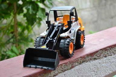 Keywords: toy plastic dozer backhoe close-up wheels construction yellow sri lanka ceylon mawanella