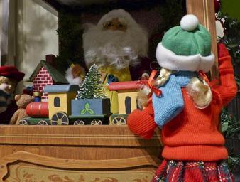 Keywords: toy shop child girl little shopping wish blond staring horizontal santa christmas
