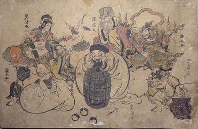 | Keywords: Toyouni I-New-Year.jpg en New Year surimono The Seven Gods of Luck designed by seven artists of the Utagawa school Toyokuni I Kunimaru Toyokiyo Kuniyasu Kunisada I Kunimitsu Kunitsugu horizontal ōban c 1820 de Neujahrs-surimono Die sieben Glücksgötter gezeichnet von sieben Künstlern der Utagawa-Schule Toyokuni I Kunimaru Toyokiyo Kuniyasu Kunisada I Kunimitsu Kunitsugu horizontales ōban um 1820 Internet Toyokuni I e a 1820-01-01 PD-old-100 PD-old Surimono Utagawa Toyokuni Surimono by Utagawa Kunisada New Year celebrations in Japan Seven Lucky Gods Woodblock prints of the Edo period Utagawa school painters |