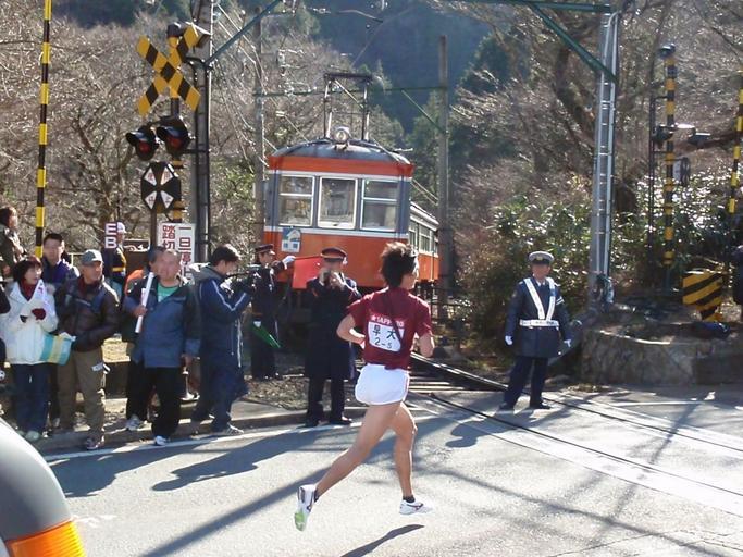 | Keywords: Tozan Kowakidani cross Ekiden Soudai.jpg en When the runner of Hakone-ekiden Relay Race passes Hakone Tozan Railway stops the train in this side of the railroad crossing 35 24009 139 05402 Hakone Tozan Type Moha 1 Waseda University Track and Field Club Kowakidani crossing 2010 Hakone Ekiden |