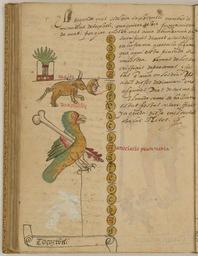 | Keywords: Tozoztontli, Festival of Bird Sacrifices, the Third Month of the Aztec Solar Calendar WDL6708.png Artwork ru Това Хуан де около 1546 г около 1626 г fr Tovar Jean de 1546-1626 env en Tovar Juan de circa 1546-circa 1626 zh 胡安·德·托瓦尔,约 1546 年 - 约 1626 年 pt Tovar Juan de por volta de 1546-por volta de 1626 ar خوان دو توفار، حوالي 1546-حوالي 1626 es Tovar Juan de circa 1546-circa 1626 ru Тосостонтли п аздник же твоп иношения птиц 3-й месяц солнечного календа я ацтеков fr Tozoztontli fête des sacrifices d'oiseaux troisième mois du calendrier solaire aztèque en Tozoztontli Festival of Bird Sacrifices the Third Month of the Aztec Solar Calendar zh 阿兹特克太阳历的第 3 个 小守 ,祭鸟节 pt Tozoztontli festival dos sacrifícios de aves o terceiro mês do calendário solar asteca ar توسوستونتلي، مهرجان قرابين الطيور، الشهر الثالث من التقويم الشمسي الأزتكي ru Кодекс Това а авто ом кото ого считается мексиканский иезуит XVI века Хуан де Това соде жит под обную инфо мацию об об ядах и це емониях ацтеков известных также как мешика Кодекс п оиллюст и ован 51 аква ельным исунком на полную ст аницу Рисунки в кото ых наблюдается значительное влияние пиктог афических укописей доколониальных в емен обладают исключительными художественными достоинствами Рукопись состоит из т ех азделов В пе вом азделе описана исто ия путешествий ацтеков до п ибытия испанцев Вто ой аздел п едставляет собой иллюст и ованную исто ию ацтеков В т етьем азделе находится календа ь Това а в кото ом п ослеживается календа ный цикл ацтеков с месяцами неделями днями воск есными буквами и елигиозными п аздниками х истианского 365-дневного года а этой иллюст ации из т етьего аздела изоб ажена птица с желтыми пе ьями п онзенная костяным о удием Выше на исованы бык и месяц а также символ с многочисленными листьями Этот месяц оп еделяемый как ап ель по аст ологическому символу быка и известный как тосостонтли малое бдение знаменовал собой п аздник п иношения в же тву птиц п оисходивший в течение всего месяца Слово <em> toz </em> обозначающее желтый на языке науатль связывает воедино изоб аженную птицу с названием месяца отив в ве хнем левом углу может быть истолкован как туника богини куку узы Центеотль кото ую часто отождествляют со следующим месяцем <br>Календа ь ацтеков; ифология ацтеков; Ацтеки; Календа и; Кодекс; Индейцы ексики; Ко енные на одности; езоаме ика; Кодекс Това а fr Le codex Tovar attribué à Jean de Tovar jésuite mexicain du XVI<sup>e</sup> siècle contient des informations détaillées sur les rites et les cérémonies des Aztèques également connus sous le nom de Mexicas Il est illustré de 51 aquarelles de la taille d'une page Fortement influencées par les manuscrits pictographiques de la période précontact ces peintures sont d'une qualité artistique exceptionnelle Le manuscrit est divisé en trois sections La première section contient une histoire des voyages des Aztèques avant l'arrivée des Espagnols La deuxième section est une histoire illustrée des Aztèques Dans la troisième section le calendrier de Tovar transcrit un calendrier aztèque continu avec les mois les semaines les jours les lettres dominicales et les fêtes liturgiques d'une année chrétienne de 365 jours Cette illustration extraite de la troisième section représente un oiseau au plumage jaune transpercé d'un instrument en os Un taureau et la lune sont également dessinés ainsi qu'un symbole comportant de nombreuses feuilles Ce mois appelé Tozoztontli petite veillée et assimilé à avril avec le signe astrologique du Taureau commémorait la fête des sacrifices d'oiseaux ayant lieu à cette période Le mot nahuatl <em>toz</em> signifiant jaune lie le mois et l'oiseau représenté Dans l'angle supérieur gauche le motif représente peut-être la tunique de la divinité féminine du maïs Centeotl souvent assimilée au mois suivant <br>Calendrier aztèque; Mythologie aztèque; Aztèques; Calendriers; Codex; Indiens du Mexique; Peuples autochtones; Méso-Amérique; Codex Tovar en The Tovar Codex attributed to the 16th-century Mexican Jesuit Juan de Tovar contains detailed information about the rites and ceremonies of the Aztecs also known as Mexica The codex is illustrated with 51 full-page paintings in watercolor Strongly influenced by pre-contact pictographic manuscripts the paintings are of exceptional artistic quality The manuscript is divided into three sections The first section is a history of the travels of the Aztecs prior to the arrival of the Spanish The second section is an illustrated history of the Aztec
