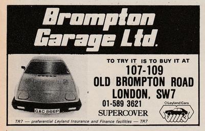 | Keywords: triumph tr7 triumph car dealer triumphcardealer brompton garage ltd bromptongarageltd text writing sign TR7 advert Brompton Garage Ltd - Triumph Car dealer advert - from What Car magazine July 1977 TR7 advert Brompton Garage Ltd - Triumph Car dealer advert - from What Car magazine July 1977 |