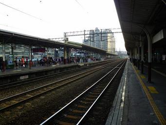 Keywords: TRA Taoyuan Station 2nd Platform in Evening.jpg zh-tw 暮色的臺鐵桃 車站第二 臺南半段與站內,自第 臺中段南 Own 玄史生 2010-10-02 TRA Taoyuan Station 玄史生写 文庫 Taken with Kodak EasyShare Z980