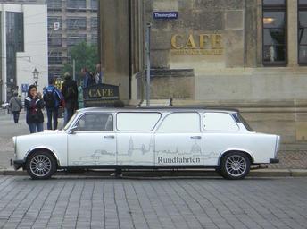 | Keywords: TrabantStretchLimo.jpg en A Trabi East German Trabant sedan modified as a novelty limousine Rundfahrten translates to Tours Own work by uploader's spouse Leonard G and Anita J Taken Sept 23 2008 in Dresden Germany Trabant 601 Stretch limousines |