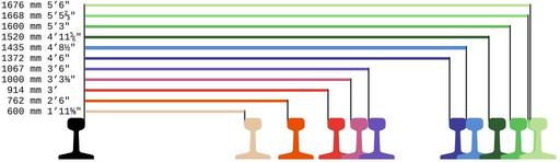 | Keywords: Track gauge.svg Comparison of various railway track gauges Rail_gauge svg 2011-12-13 23 31 UTC Rail_gauge svg http //commons wikimedia org/wiki/User IRTC1015 derivative work HTML2011 <span class signature-talk >talk</span> mm first for better readability HTML2011 Rail_gauge svg Rail track profiles Uploaded with derivativeFX Track gauge comparison |