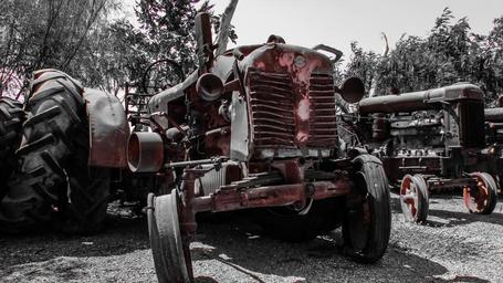 Keywords: tractor old rusty machinery abandoned destroyed weathered decay