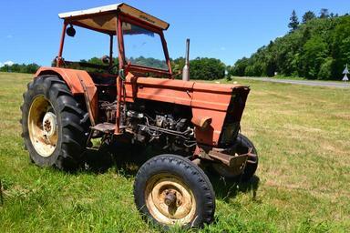 Keywords: tractor red tractor red old tractor fields summer