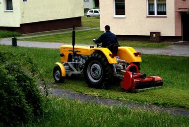 Keywords: tractor trailer scything mowing mow grass osiedle city poland kielce jib ursus wiocha village