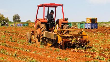 Keywords: tractor working potato harvest agriculture