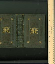 | Keywords: Tracts 1-3 bound together. Tract 1 is; Beati Maximi Confessoris ... de Incarnatione Verbi, tum cæteris ... quæstionibus dialogus. Interprete B. Birckheimero.-Nurembergæ, 1530. - Upper cover and spine (C66b4).jpg Style Armorial Fleur de lis Dolphin motif Panel design; Caption Upper cover and spine; Colour Brown; Edge Gilt Gilt gauffered exhibition history Decorative Technique Tooled in gold Tooled in blind; Cover Material Calf All edges are lettered; from top IESEUS VICTOR MAGNIFICUS 5 double spine bands 2 half bands at top and tail object history Text 1530; Nuremberg; Unspecified object type Cc-zero place of creation Binding France place of discovery Unspecified British Library image http //www bl uk/catalogues/bookbindings/LargeImage aspx RecordId 020-000020552 ImageId ImageId 58394 Copyright BL Tracts 1-3 bound together Tract 1 is; Beati Maximi Confessoris de Incarnatione Verbi tum cæteris quæstionibus dialogus Interprete B Birckheimero Nurembergæ 1530 Uploaded with GWToolset Tracts 1-3 bound together Tract 1 is; Beati Maximi Confessoris de Incarnatione Verbi tum cæteris quæstionibus dialogus Interprete B Birckheimero Nurembergæ 1530 - Upper cover and spine C66b4 http //www webarchive org uk/bldatasets/bindings/c66b4 jpg Bookbinding 16th-century bookbinding British Library Bookbindings |