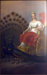 | Keywords: Trade-sign of the Junó perfumery.jpg Junó - cégér a Váci utcában a 19 században en Iuno - trade sign in Budapest in the mid 19th century showing the Roman goddess Juno in a chariot drawn by peacocks Oil on canvas Budapest Kiscelli Museum own ; Photo by Szilas in the Kiscelli Museum First half of the 19th century Jakob Warschag 1819-1873 PD-old-100 Other versions Paintings in the Kiscell Museum Hera in post-antique paintings Historical trade signs | ||||