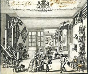 | Keywords: Tradecard.jpg Trade card 1730-1742 V A Museum no 14435 60 Techniques - Etching ink on paper Artist/designer - Unknown Place - London England printing Dimensions - Height 17 2 cm unmounted Width 21 cm Object Type - This object is a printed trade card Trade cards were business cards and advertisements Tradesmen often also used them to write receipts or bills on Subject Depicted - The trade card depicts the interior of Christopher Gibson's upholstery shop in St Paul's Churchyard London Little is known of Christopher Gibson's upholstery business which is recorded from 1730 to 1745 except that on two occasions he supplied chairs to the East India Company for furnishing East India Company House in leadenhall Street London Several upholsterers can be seen at work around the shop and a wide range of goods is displayed There are several cane chairs chairs with upholstered seats rolls of fabric a mirror and an angel bed a bed with a canopy which attaches to the back wall Funerary 'hatchments' the coats of arms on black backgrounds can also been seen hanging near the stairs Although the trade card is probably not an accurate representation of the interior of Christopher Gibson's shop all the objects included would have been chosen to show the range of goods that Gibson could supply The fact that the funerary equipment is included therefore suggests that Gibson's business included the furnishing of funerals alongside the upholstery of furniture The well-dressed man in the centre is possibly meant to be Christopher Gibson himself showing a chair to two the two women likely customers http //collections vam ac uk/item/O77410/trade-card/ 1730 1742 author PD-art-100 Original upload log en wikipedia Quadell CommonsHelper en wikipedia Tradecard jpg 2008-01-02 10 52 VAwebteam 691×576× 129891 bytes <nowiki>Trade card 1730-1742 V A Museum no 14435 60 Techniques - Etching ink on paper Artist/designer - Unknown Place - London England printing Dimensions - Height 17 2 cm unmounted Width 21 cm Object Type - This object is a printed trade card Trad</nowiki> Etchings in the Victoria and Albert Museum 18th-century etchings Trade cards Commerce in art Upholstery 1730 Shops in London London in the 18th century |