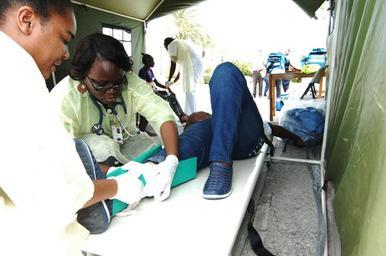 | Keywords: Tradewinds 2014 plane crash exercise 140604-N-IA840-248.jpg en Nurse Gailann Mofford left and Dr Carolyn Thomas both with Mount St John ™s Medical Centre splint a simulated broken leg of Aloma Joyce a lifeguard with the Antigua and Barbuda Ministry of Tourism during a mass casualty training exercise here on June 4 Joyce and several other lifeguards volunteered as role players simulating injured plane crash survivors during an Antigua and Barbuda Defence Force ABDF training exercise The exercise tested the response capabilities of local emergency services and ABDF members and in search and rescue medical triage and treatment tactics and procedures as part of Tradewinds 2014 Tradewinds is a joint combined exercise conducted in conjunction with partner nations to enhance the collective abilities of defense forces and constabularies to counter transnational organized crime and to conduct humanitarian/disaster relief operations U S Navy photo by Chief Mass Communication Specialist Elizabeth Thompson 2014-06-04 Chief Petty Officer Elizabeth Thompson https //www dvidshub net/image/1380642 140604-N-IA840-248 2014-06-05 12 39 ST JOHN'S AG PD-USGov-Military-Navy Tradewinds 2014 Images from DoD uploaded by Fæ |