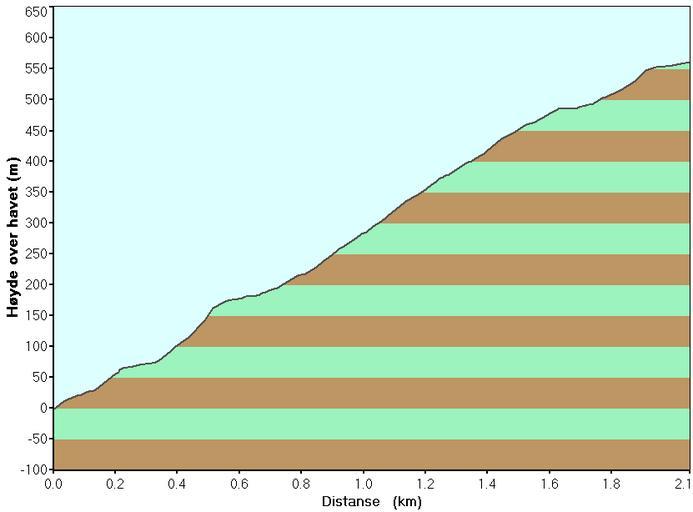 Keywords: Trælneshatten-Profil.PNG en Height profile climbing the Trælneshatten mountain in Brønnøy Norway no Høydeprofil ved bestigning av Trælneshatten i Brønnøy kommune Own Event 2009-08-16 cc-zero Brønnøy altitude profiles