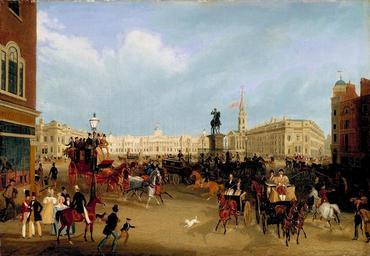 | Keywords: Trafalgar Square by James Pollard.jpg Trafalgar Square Oil on Canvas Signed and indistinctly dated 21 1/4 x 30 1/2 in 54 x 77 5 cm 21 James Pollard died 1867 PD-old-100 Paintings of Trafalgar Square James Pollard Equestrian statue of Charles I Charing Cross |