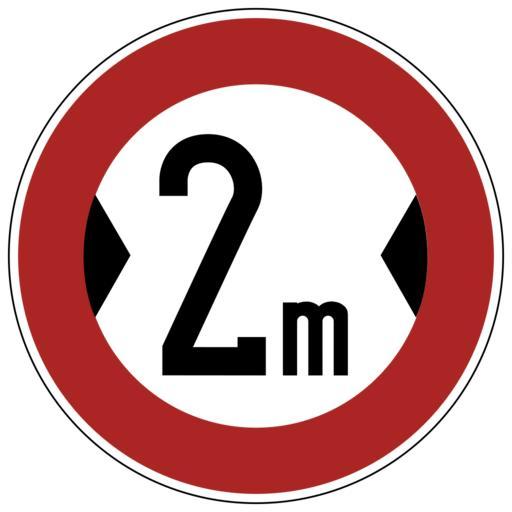 Keywords: traffic ban vehicles over certain width forbidden prohibited sign road sign signage 2m two meters symbol red circle warning caution regulation restricted