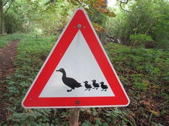 Keywords: traffic sign ducks nature conservation nature protect caution attention note ducklings duck mother
