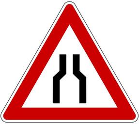 Keywords: traffic sign road sign shield traffic road street sign drive auto warning attention note narrow roadway