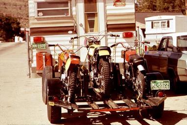 | Keywords: Trail bikes and camper -NARA - 544859 (restored).jpg en Camper hauling off-road motorcycles on trailer near Lyon Colorado United States May 1972 Scan from old photographic print Reversed aging cropped and repaired scratches and blemishes Derivative of File TRAIL BIKES AND CAMPER - NARA - 544859 tif Norton Boyd 1936- Photographer 1111093 <br />Digital image modified by Hydrargyrum 2015-04-02 File TRAIL BIKES AND CAMPER - NARA - 544859 tif NARA-cooperation PD-USGov cc-by-sa-3 0 Boyd Norton 1972 in Colorado 1972 license plates Lyons Colorado Green and white license plates License plates of Colorado Truck campers Unidentified motorcycles Trailer license plates Motorcycle carrying trailers |