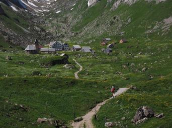 Keywords: trail hike wanderer bergdorf meglisalp alpine village appenzell innerrhoden alpstein region destination church homes chapel migratory goal