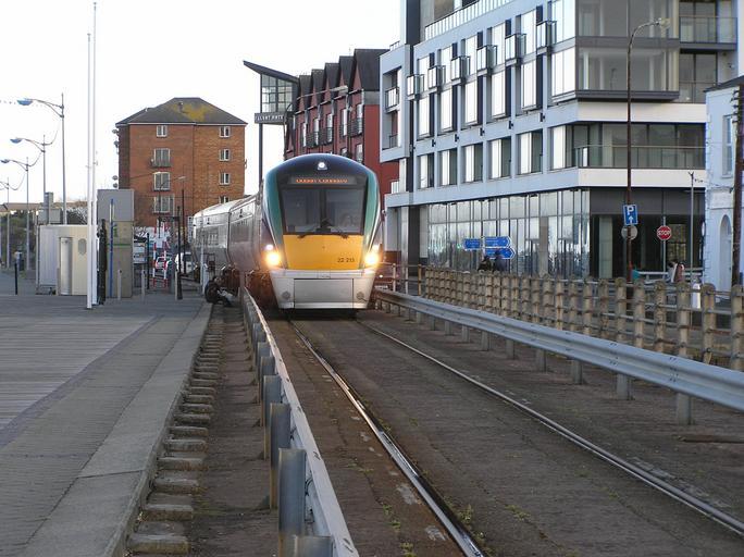 | Keywords: Train approaching quays in wexford town from Rosslare apr2012.JPG en Picture of a train approaching the quays in Wexford Town from Rosslare heading to Dublin Taken on evening 6 20pm on Sat 14th Apr 2012 2012-04-14 18 20 55 own Terence wiki cc-zero Passenger trains in Ireland Wexford railway station IE 22000 Class On-street running |