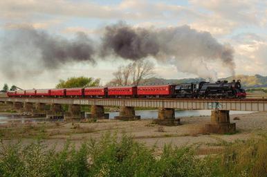 Keywords: crossing train Otaki River railway bridge excusion Woodville New Zealand