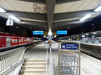 Keywords: train gateway departure arrival containing stop railway station platform railway breakpoint old traffic rail traffic railroad track track central station ad clock transport seemed luggage cart
