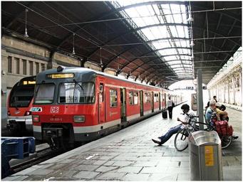 Keywords: train germany mainz station waiting train station city people travel work depot