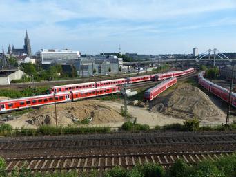 Keywords: train rail traffic gleise ulm locomotive traffic seemed railway site ulm cathedral ludwig erhard bridge