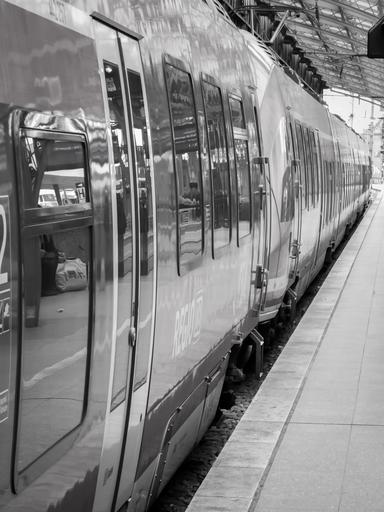 Keywords: train railway station railway travel farewell railroad track platform cologne rail traffic central station roof construction departure