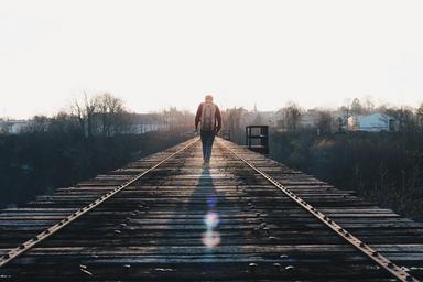 Keywords: train tracks walking journey alone person architecture voyage