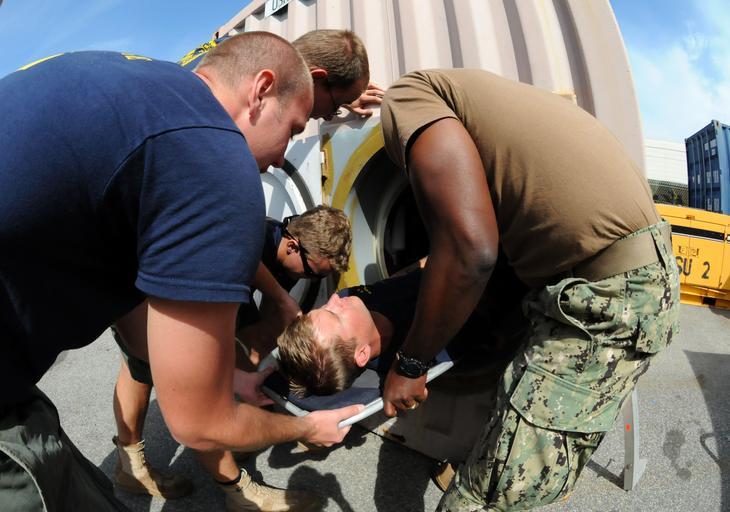 | Keywords: Training exercise 120920-N-ZQ794-046.jpg en Sailors assigned to Mobile Diving and Salvage Unit 2 transport Navy Diver 3rd Class Phillip Hoefer into a transportable recompression chamber during a training exercise at Joint Expeditionary Base Little Creek - Fort Story Sept 20 MDSU is capable of planning coordinating directing and conducting anti-terrorism force protection missions disaster relief efforts battle damage repair underwater search operations harbor and waterway clearance emergent underwater repairs and salvage operations 2012-09-20 Petty Officer 3rd Class Kay Savarese https //www dvidshub net/image/669357 120920-N-ZQ794-046 2012-09-21 10 24 VIRGINIA BEACH VA US PD-USGov-Military-Navy United States Navy Mobile Diving and Salvage Unit Two Images from DoD uploaded by Fæ |